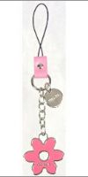シルバーメタルのフラワーモチーフ携帯ストラップ。